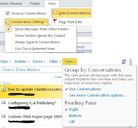 Clearly, some challenges exist in terms of forming conversations from older items but, on the whole, Exchange 2010 and the clients that support conversation views seem to do a pretty good job. Clients like Outlook 2003 and Outlook 2007 that know nothing about conversations blissfully ignore them.