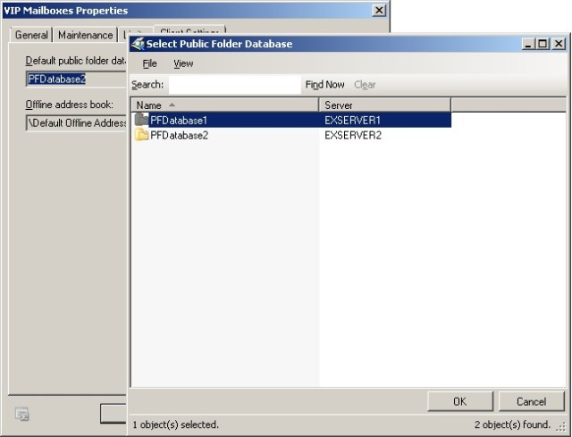 Any public folder can be replicated to databases on multiple servers. The public folder hierarchy is always replicated to every public folder database so that each server can present a complete view of every public folder that is available in the organization to clients that request this data. The folder hierarchy lists every folder, its permissions, and details of the servers that currently host databases that contain replicas of each folder. Replicas of every folder do not necessarily exist in every public folder database. When public folders exist in an organization, every mailbox database is associated with a public folder database and clients always attempt to connect to folder replicas in the public folder database associated with their mailbox database. If clients need access to a folder replica that is not present in the database that they are currently connected to, Exchange creates a referral to the most appropriate public folder database that contains a replica. You can view the public folder database that is used by a mailbox database by looking at its properties through the Client Settings tab. As you can see in Figure 5, the IT Department database currently uses PFDatabase1, so any connections from mailboxes hosted by this database will go to PFDatabase1. If this isn’t the most appropriate public folder database to use, we can select another one – perhaps a public folder database that is hosted by the same server as the mailbox database.