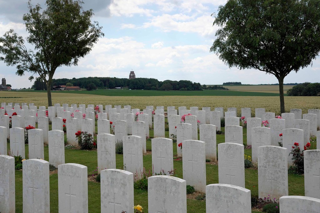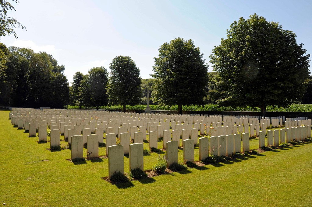 The Commonwealth Graves Commission (CWGC) does an excellent job of maintaining its graveyards, but what makes these places special is the unique stories that you run into time after time. Of course, every one of the gravestones tells its own stories but there are some that are a little different. In the case of Mill Road, many of the tombstones are laid flat on the ground because of the large number of tunnels and dugouts from the old German trench system that are in the area.