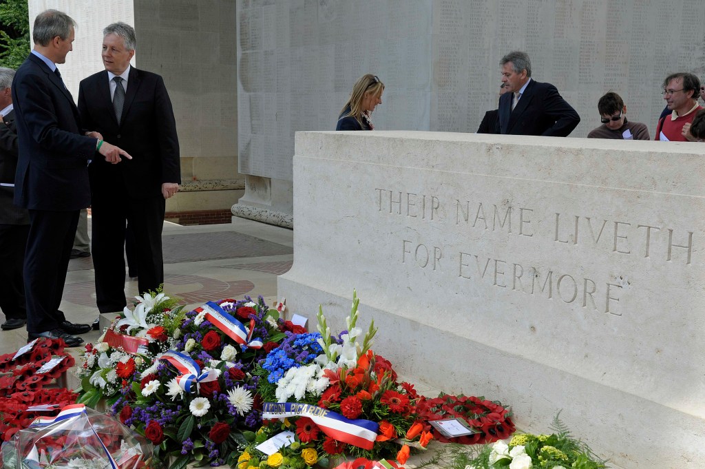 It was interesting to run into some politicians at Thiepval, including Peter Robinson (First Minister of Northern Ireland) and Owen Paterson (Northern Ireland Secretary – UK Government). Lots of military representatives laid wreaths, including the Bundeswehr (German Army).
