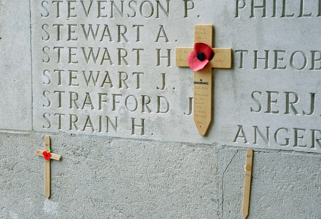 A slight hitch developed when I ran into some commemorations at Thiepval Memorial which necessitated leaving the car on the side of the road. The commemorations are an annual event organized by the Royal British Legion to mark the anniversary of the first day of the Battle of the Somme. Lots of people of different nationalities had turned out to see the bands and observe the ceremonies. Afterwards, many leave their own tributes to the fallen at the memorial.