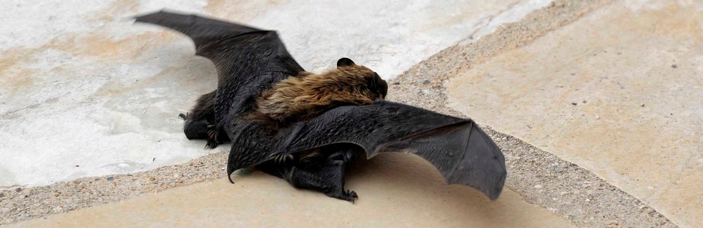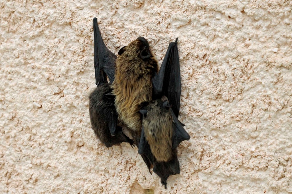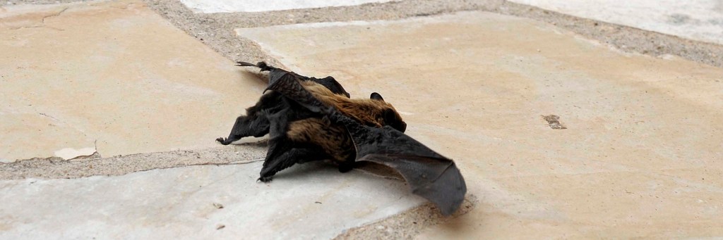 Recently a mother bat appeared on the terrasse with two babies clinging to her.