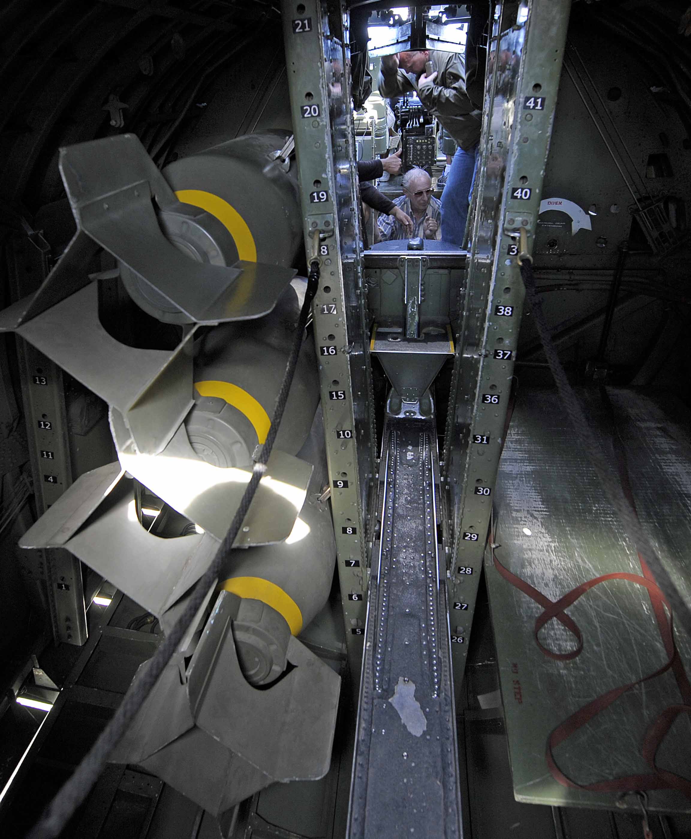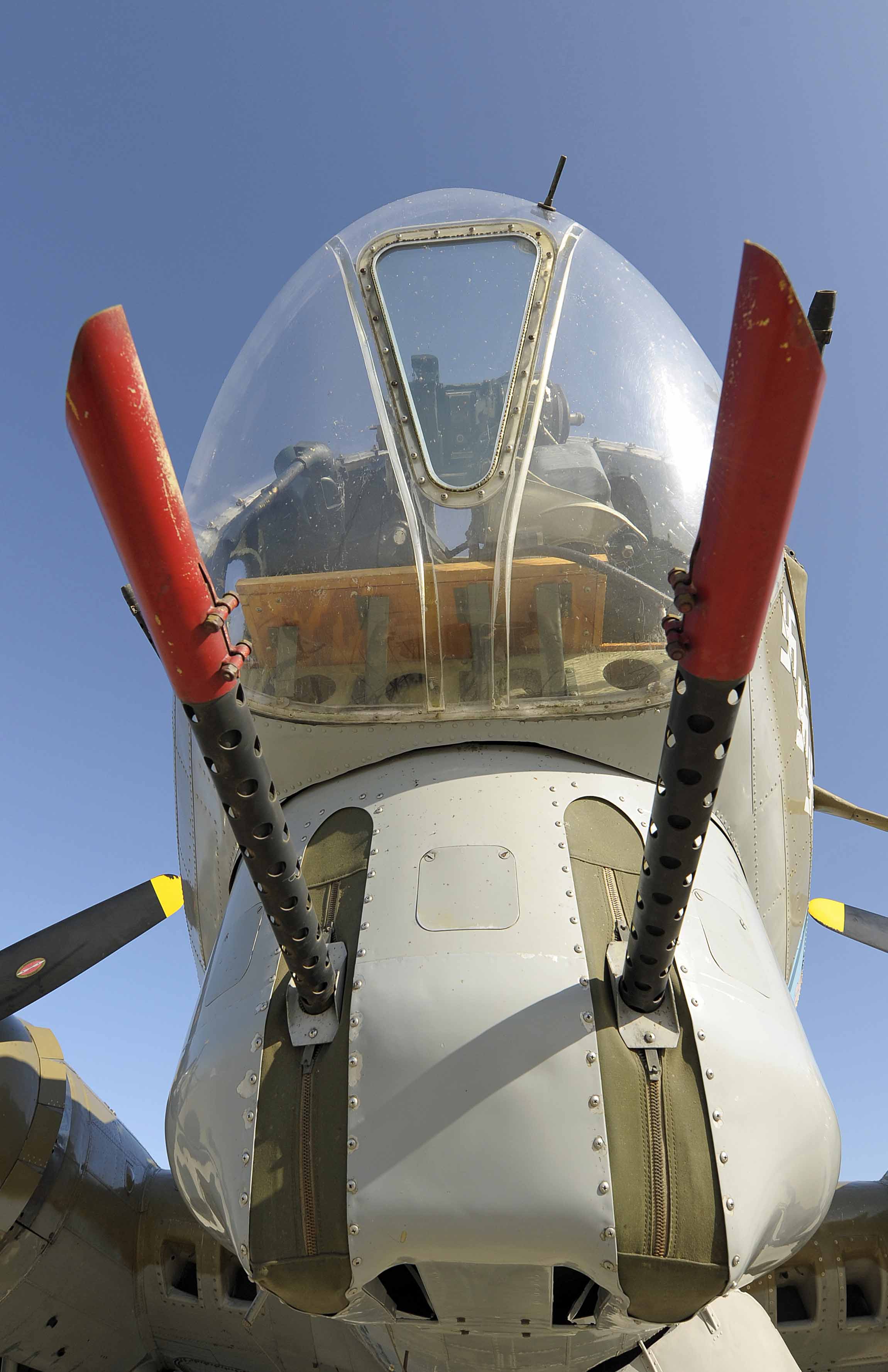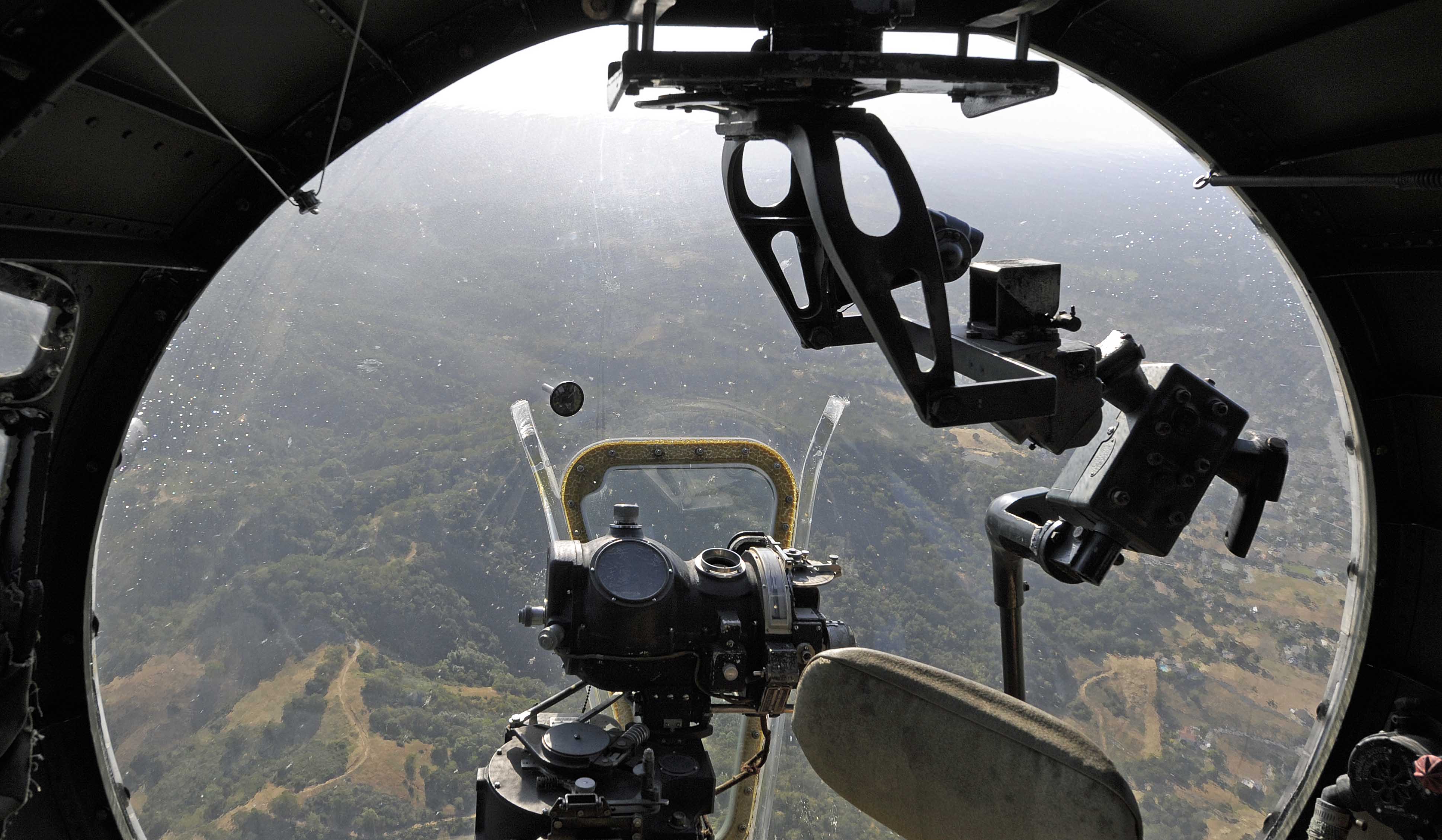 Once through the bomb-bay, you drop down to a crawl space to move forward into the nose of the B-17 to reach the bombardier’s position. This is where the aiming mechanism is located as well as the controls to allow the bombardier to drop the bombs when the desired aiming point was reached. Naturally, it provides the best view in the place.