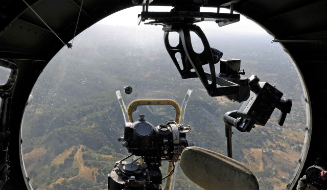 On flights like this the perspex nose of the B-17 provides a great view of the ground as it passes by. I can’t imagine what it would have been like when operating at 20,000+ feet, trying to locate a predetermined aiming point in combat conditions. The B-17 typically flew daytime operations and so all of the chaos of combat such as flak, enemy aircraft, and the other B-17s in action would have been clearly obvious from this position.