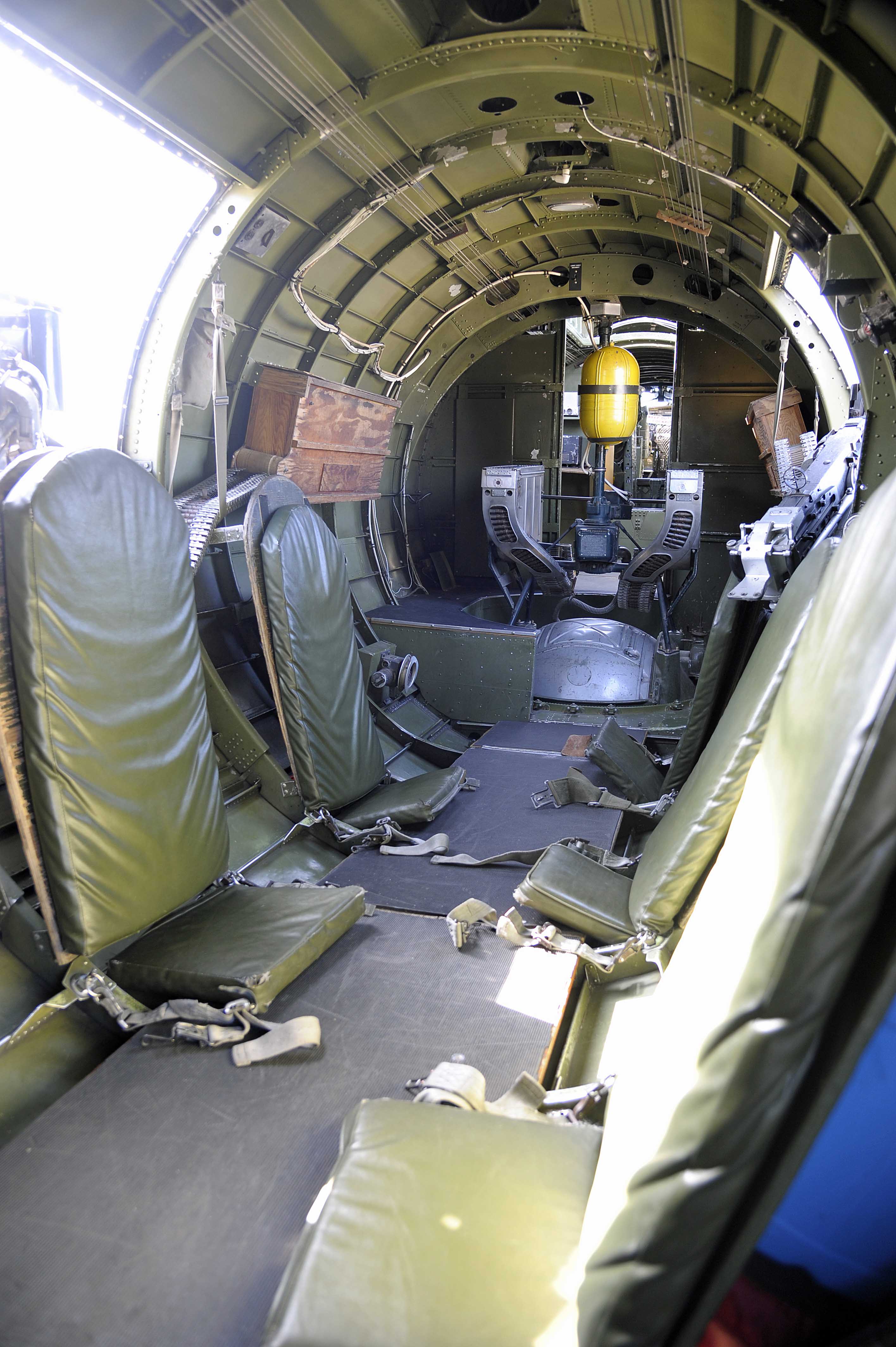 I’ve seen B-17s up close before and had some conception of what the airplane is like. However, nothing quite prepares you for the experience of actually getting into a very bare-bones interior painted in tasteful military olive green throughout and strapping yourself to the floor before takeoff. All of the complaints about bad and uncomfortable airline seats disappear from your mind (even those in the old United B757-200s that continue to fly when their competition has moved so far in advance that it’s unreal) as you cope with old-style seatbelts that you’re pretty sure will be absolutely useless in the case of a crash. Oh well, that’s why you sign the indemnity form before getting into the plane.
