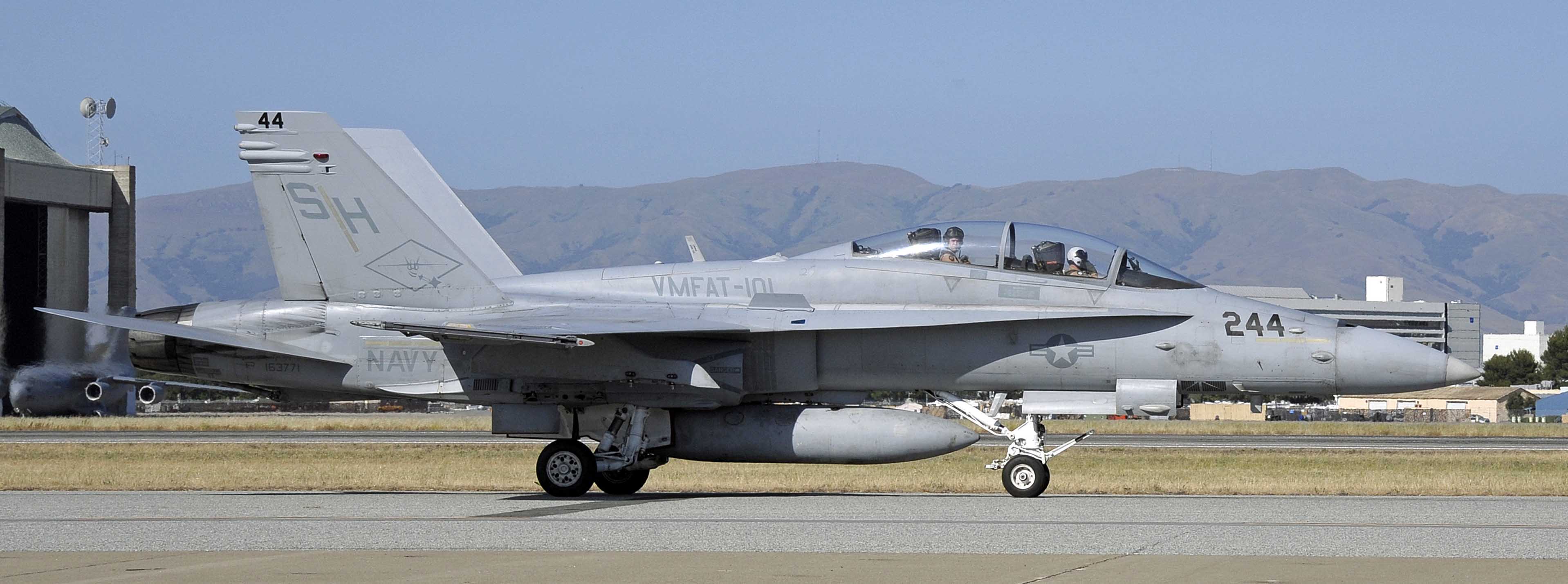 More interest was created by the presence of a Marines F/A-18D Hornet squadron (VMFAT-101) that was using Moffett for training purposes. The Marine pilots showed their stuff off by flying over the base and then landing before parking their five aircraft close to the control tower.