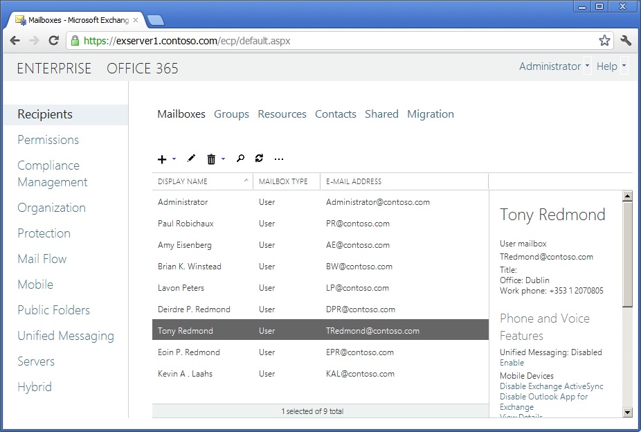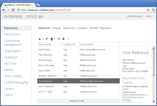As evident in the development of ECP, Microsoft has been on the path to browser-based administration for around six years now. You can understand why from their perspective as it makes a ton of financial, engineering, testing, and support sense to eliminate the Windows-based management tools. In 2011, Exchange 2010’s EMC experienced problems when the IE team upgraded a component that EMC used only to find that the EMC window wouldn’t close in some circumstances. Perhaps EAC will be less prone to breakage because of some change in a Windows components. Given Microsoft’s current focus on cloud-based delivery for its Office products, it also makes eminent sense for the Exchange team to discard any utility that’s tied to Windows and focus instead on creating a comprehensive management framework that works well across both on-premises and cloud environments. I see this happening in EAC and again, a hint to Microsoft’s directions is provided by the prominent “Office 365” label displayed by EAC.
