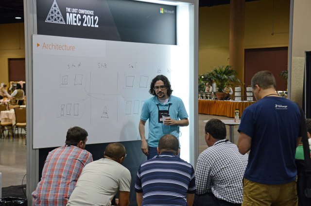 Many of the interactive sessions were packed out and people had to sit on the floor to attend (up to the capacity limit of the rooms). I think some better scheduling and use of larger rooms for sessions that you could almost predict would be popular is essential in future events, else attendees will end up with numb buttocks, a condition that I suffered after sitting through one session. For example, Greg Taylor’s sessions will always be packed because he comes out with some amazing stuff, not all of which is linked with technology (his views on the cancellation of TMG were appreciated). Sessions on DAGs and high availability are likewise always popular.