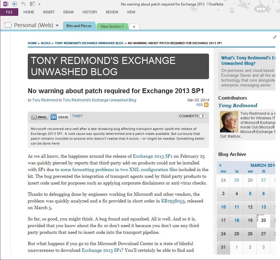 The March 17 launch of OneNote for Mac received a lot of publicity, if only a fraction of what you can expect if Microsoft makes the expected announcement about the availability of Office for the iPad on March 27 (the same day that MacWorld 2014 opens in San Francisco). It looks like the OneNote team launched first to avoid the tsunami of commentary that will flow when Office for iPad appears, which seems like a sensible tactic.