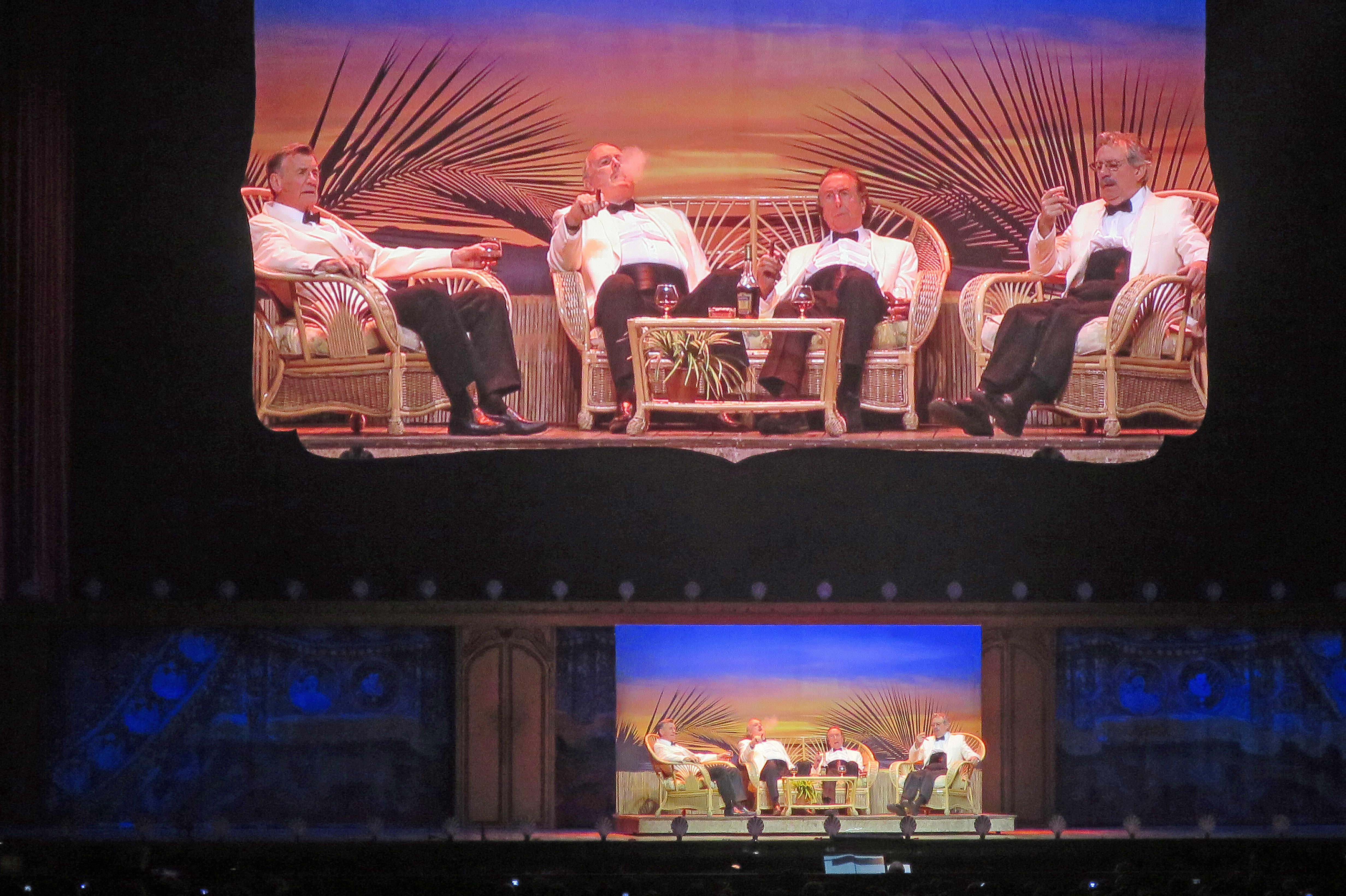 We attended the second Monty Python Live (Mostly) concert (July 2). I had read the reviews of the first night and discovered that most of the critics were unhappy because the show was basically a rerun of many popular sketches including “Four Yorkshiremen” (above). However, that’s exactly what I expected and my view appeared to be shared by the vast majority of the 16,000 crowd, not many of whom looked for new breakthrough comedy from the 70+ year old stars.