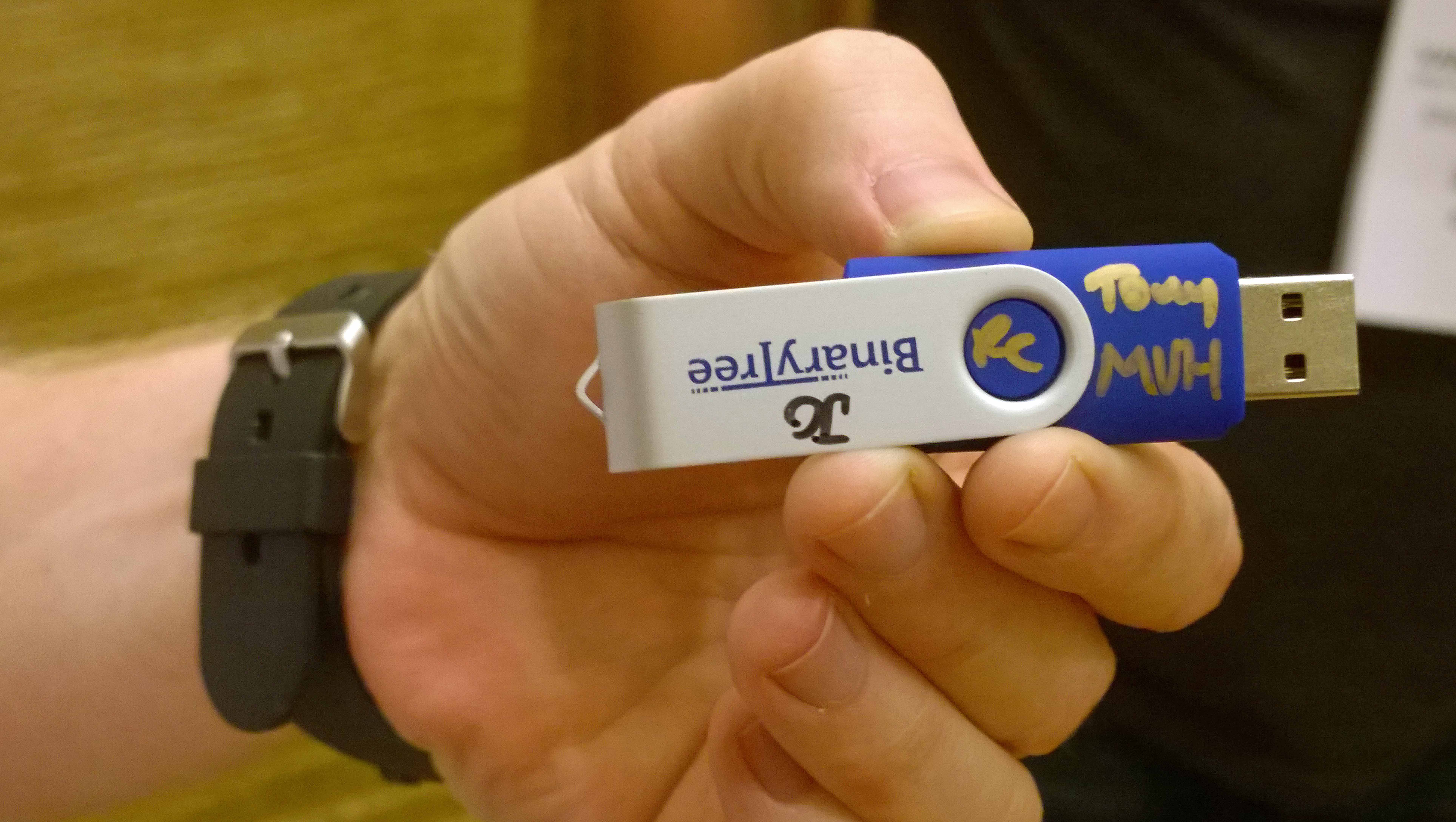 In the halcyon days of print publishing, a book launch was an opportunity for those who attended to get a copy of the book signed by the author. It’s pretty difficult to sign an eBook, but we came up with the idea of signing the USB key with a Sharpie. I have no idea of how long these signatures will last, but creating an assembly line to have the four of us sign each USB was a bit of fun.