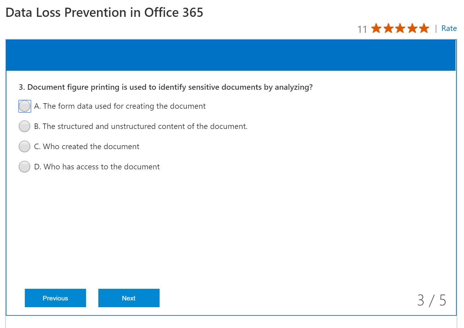 An example of how questions suffer from ageing is shown below. The answer to question 5 is marked as incorrect, but the answer is actually correct because Microsoft updated mailbox auditing for Exchange Online last year to support owner action logging. This is not the fault of the instructor as the response was accurate in June 2015 when the module was published. It’s just wrong now.