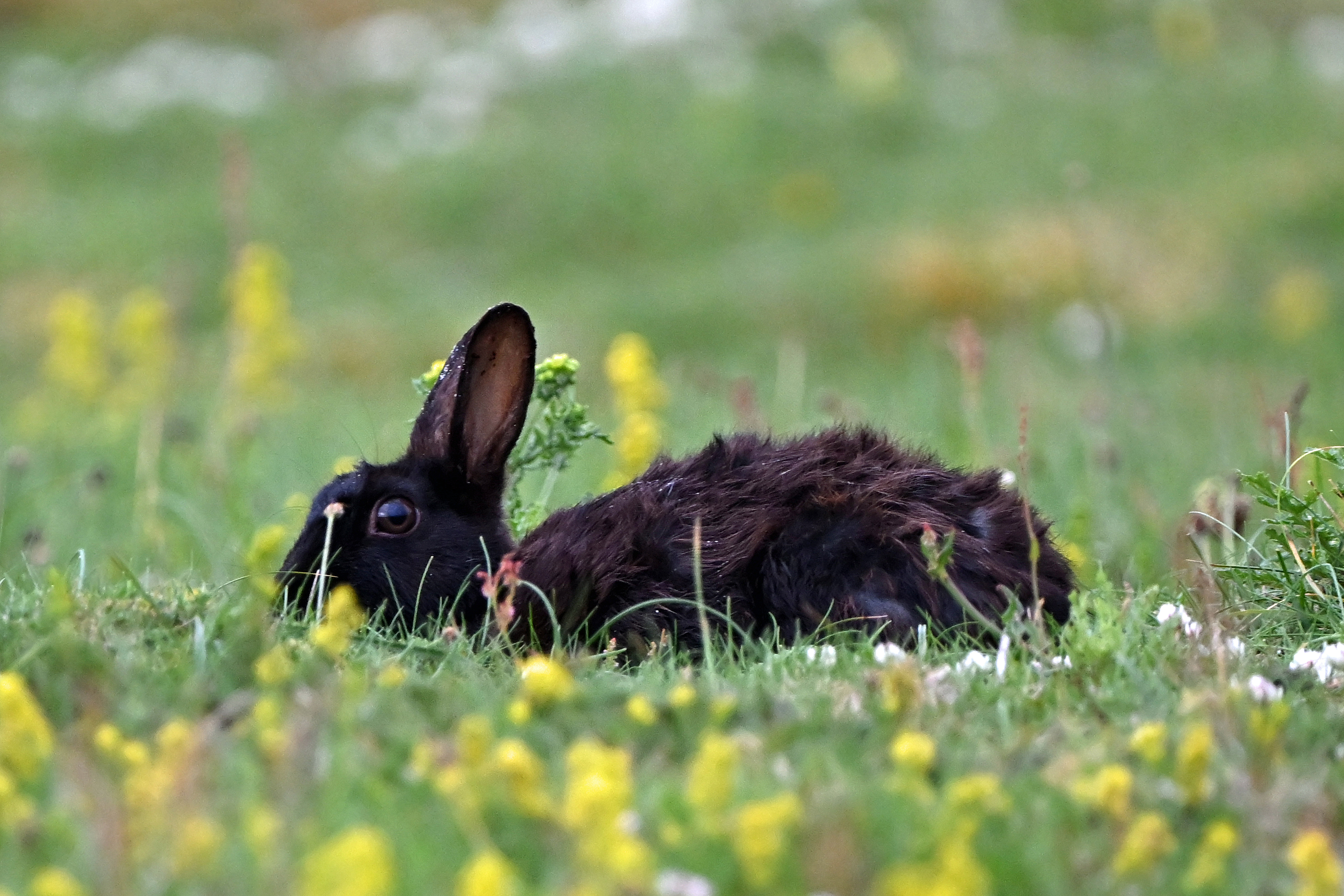 Although I like taking photos, sometimes it’s even better to just sit and watch the rabbits get on with their day. Occasionally a dispute breaks out between two rabbits, perhaps over access to a choice flower or other piece of food, but most of the time everything is very peaceful. Spending some time with the rabbits is a great way to break a walk between Aillebrack and Bunowen.