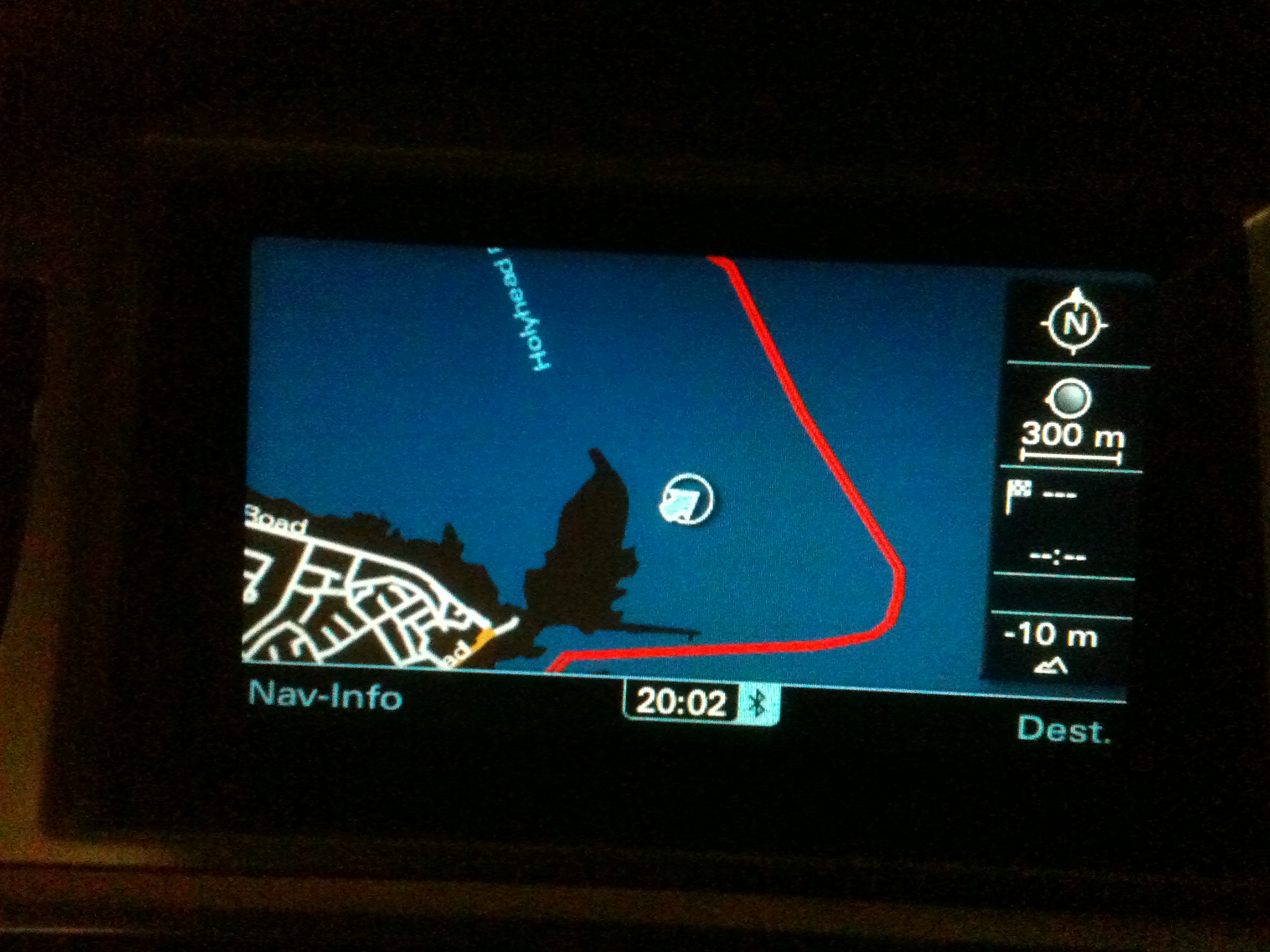 Finally, the Sat Nav in my Audi A6 showed some interesting information when we were waiting to get onto the ferry. Apparently we were positioned 10m deep in water off the Welsh coast (above). In any case, all went well and our feet stayed dry.