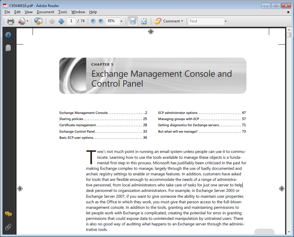 Update: 7 September – Chapter 11 (Client Access Server). Another 71 pages reviewed and back to Microsoft.